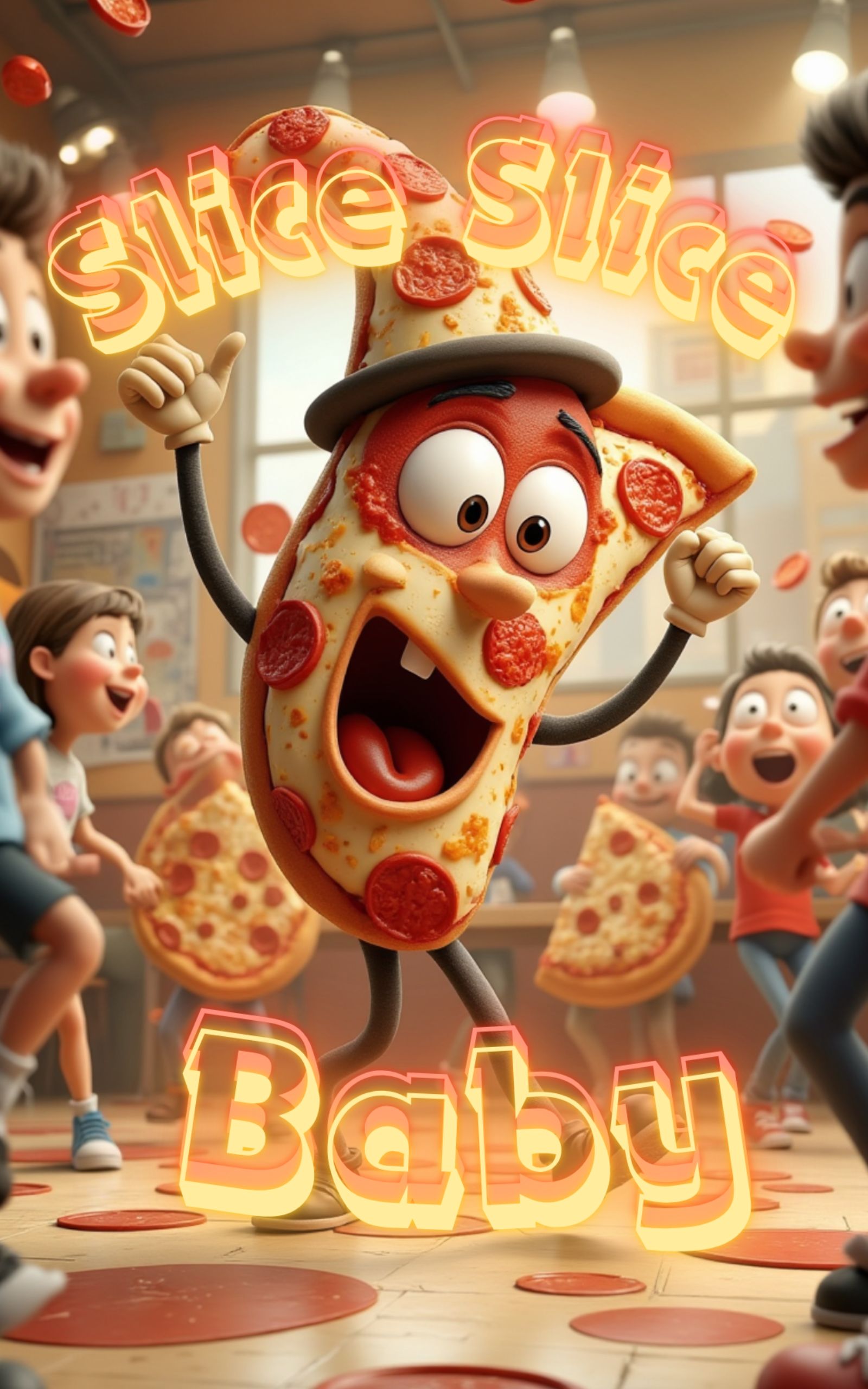 Hi moms, dads, and little friends! “I’m not running—I’m SASHAYING!” Meet Pepperoni Pete—the grooviest, sassiest slice of pizza in town—who just wants to boogie, not be eaten!